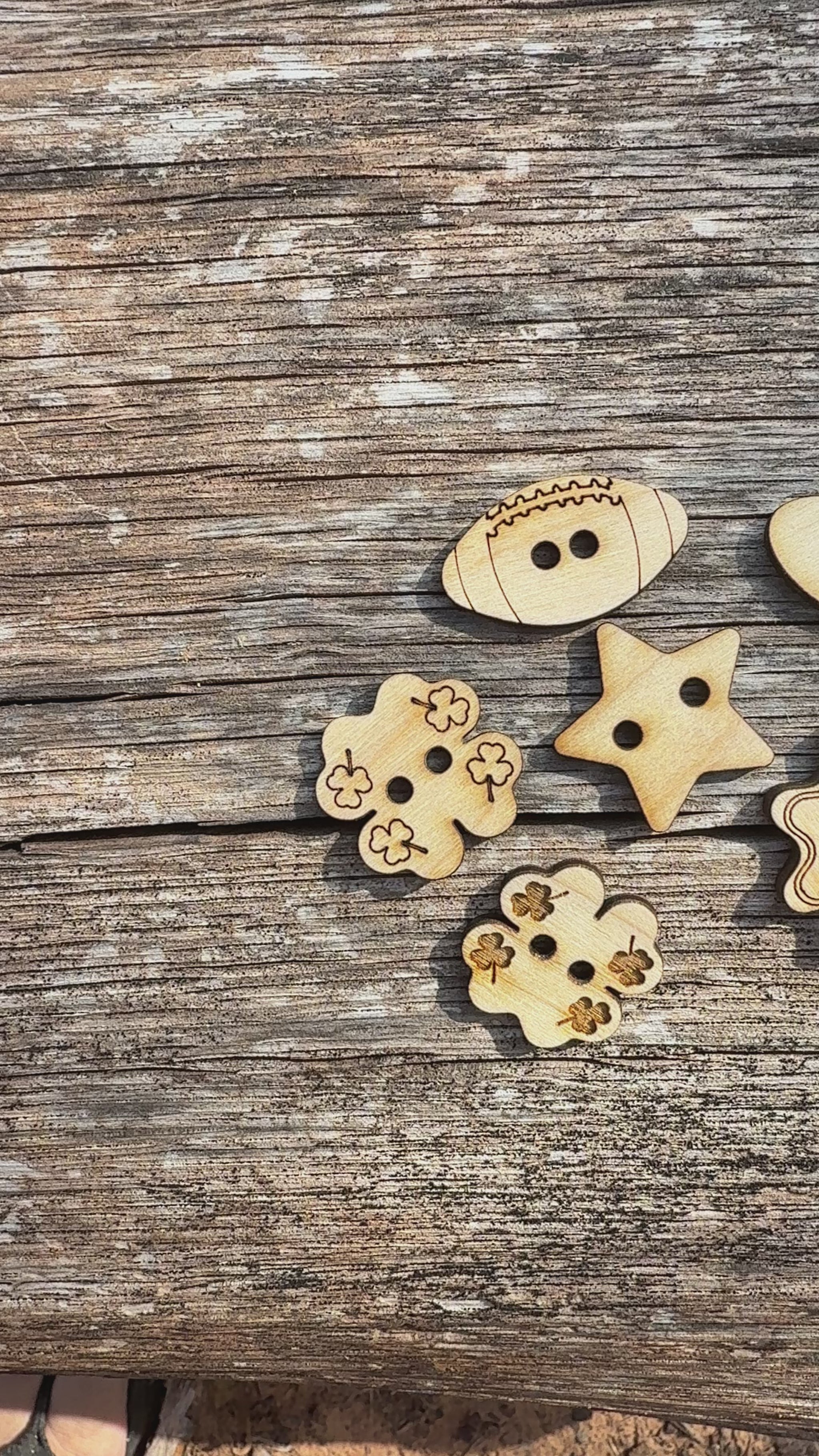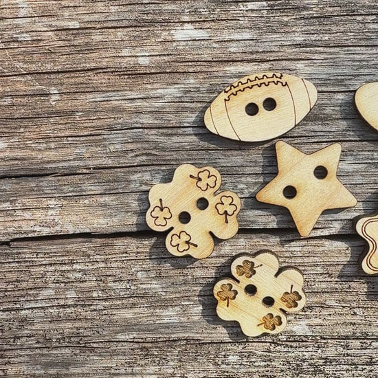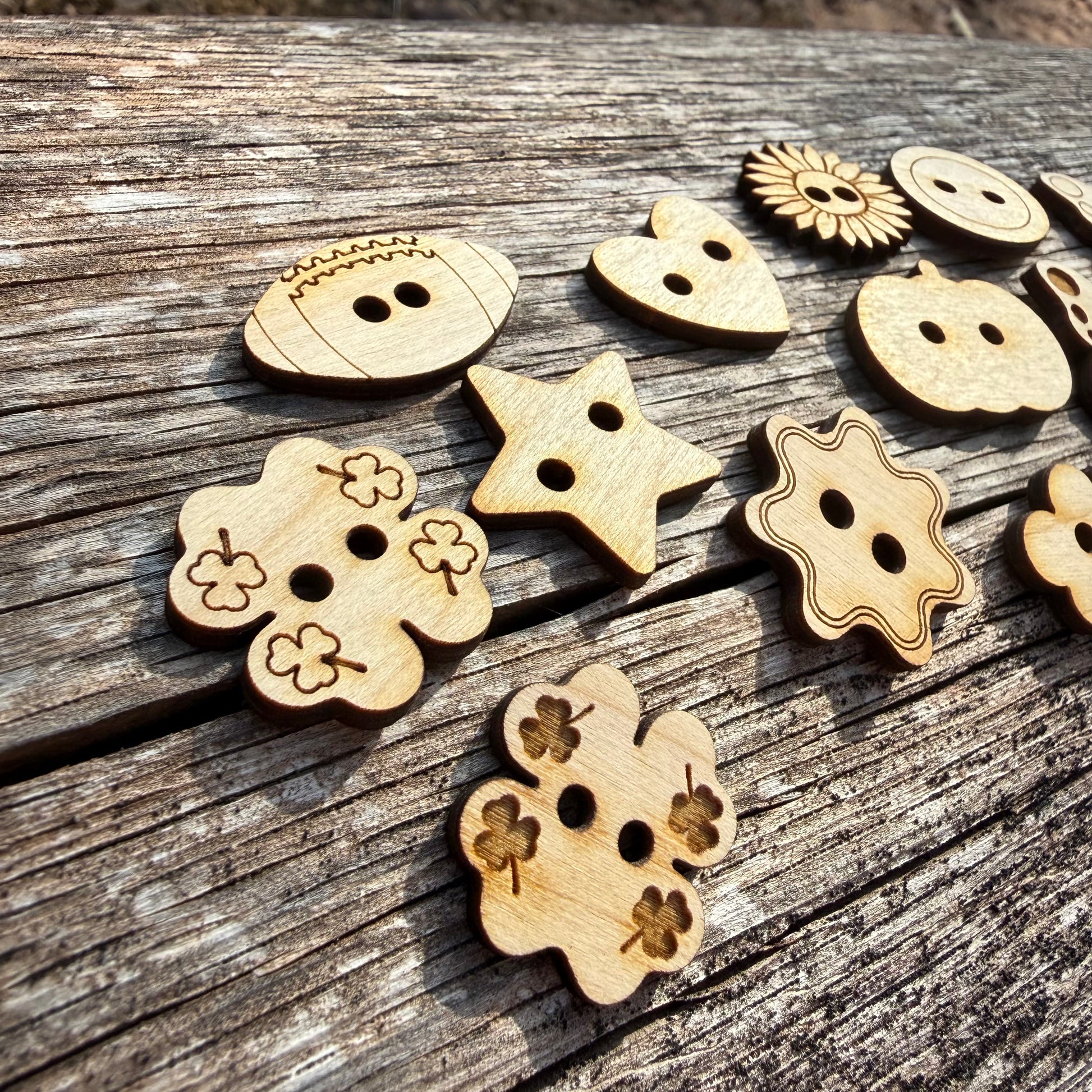 Add the perfect finishing touch to your handmade projects with this assorted set of laser-cut wooden buttons! Each button is carefully crafted from smooth natural wood and features a variety of fun shapes — pumpkins, hearts, stars, flowers, butterflies, and more.