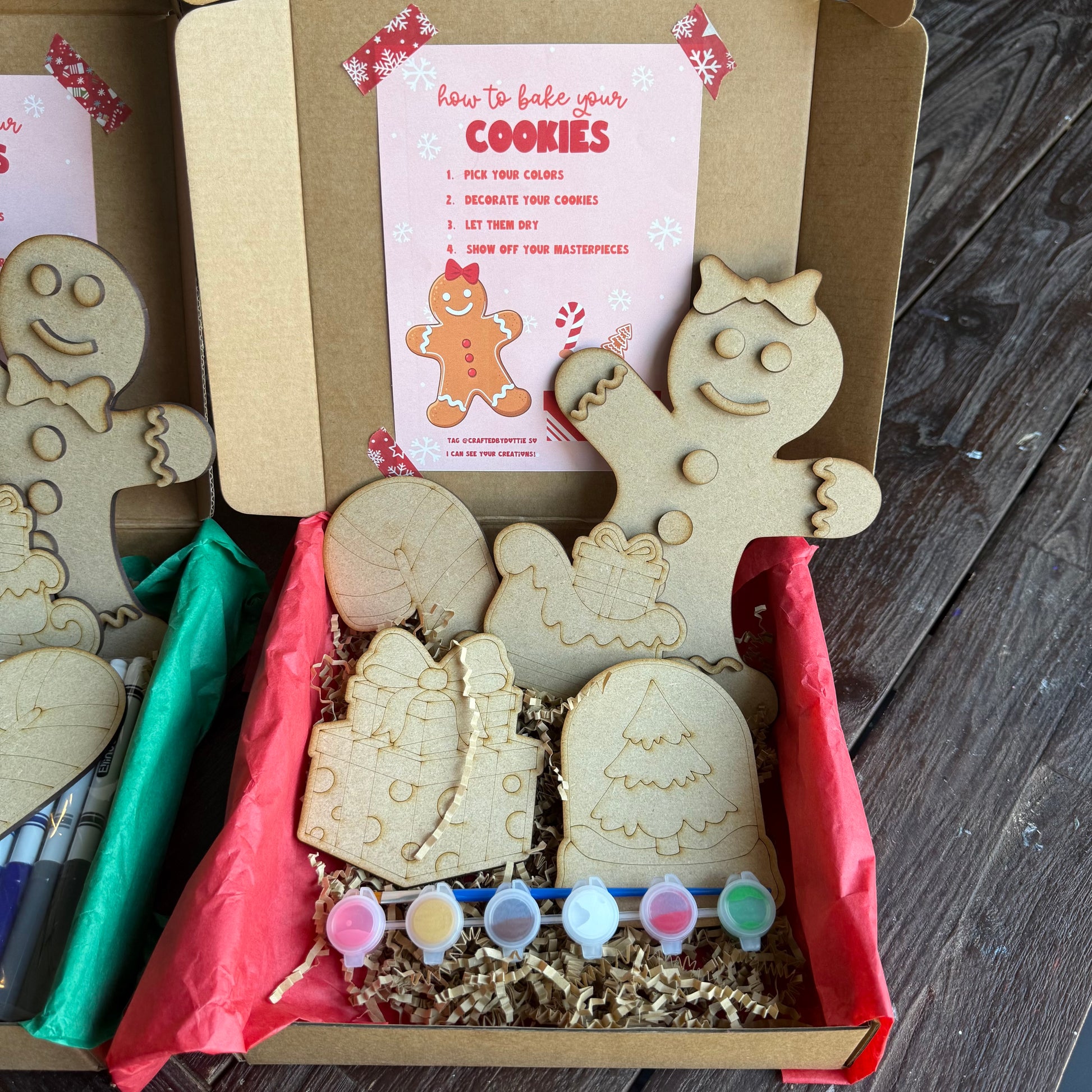 Gingerbread Paint Kit or Marker Kit – Kids Christmas Craft Box with Bonus Cutouts – Holiday DIY Activity Gift